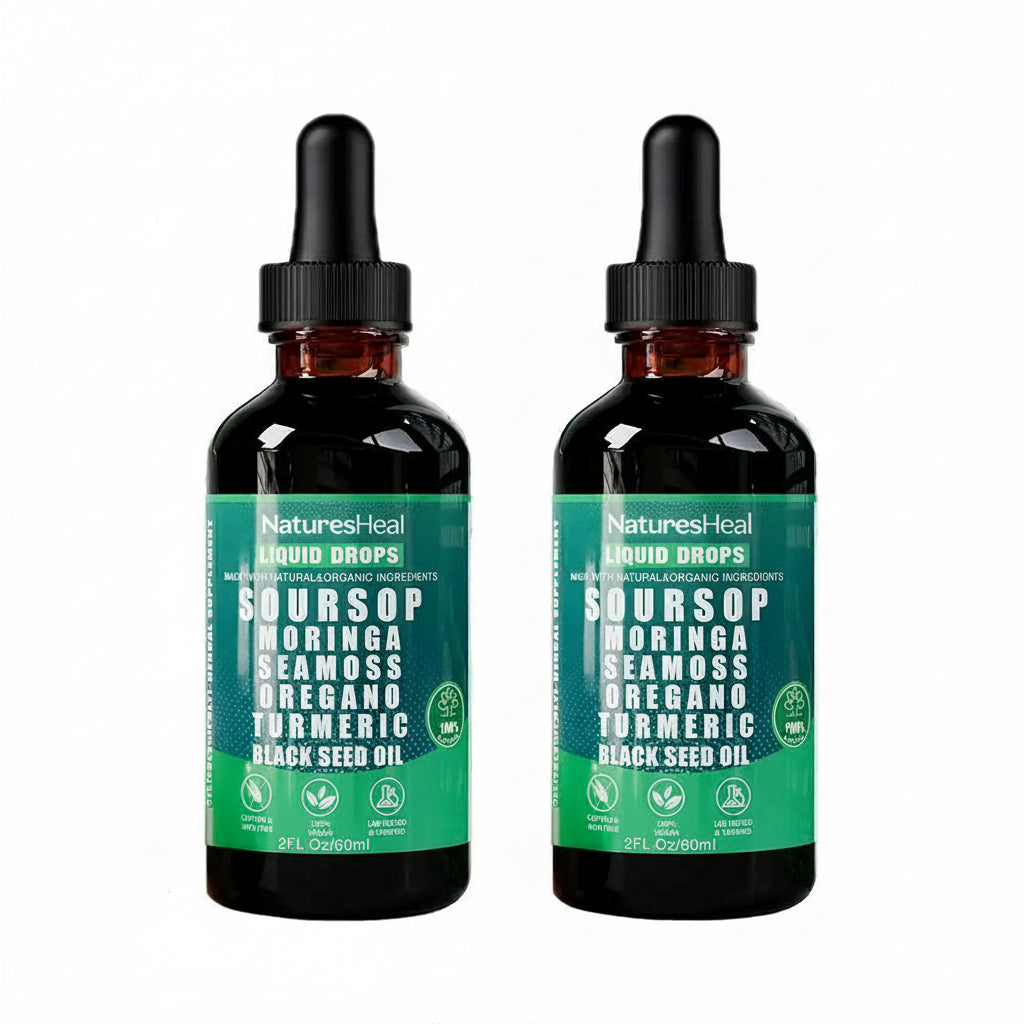 Soursop Bitters Liquid Drops 10 in 1 with Sea Moss, Moringa, Turmeric, Black Seed Oil, Oregano, Ashwagandha
